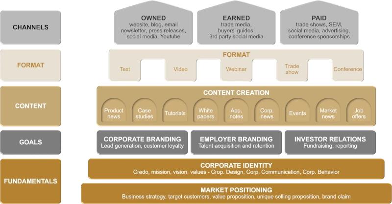 Building on your market positioning, we will help you formalize your brand identity. This is not about creating a logo. It’s about defining what makes you special for your audience: your mission statement, your value proposition, your values and your communication style. All these will be the guiding principles for all marketing activities to deliver a strong, consistent message. A new corporate design may or may not be needed to complete the process.